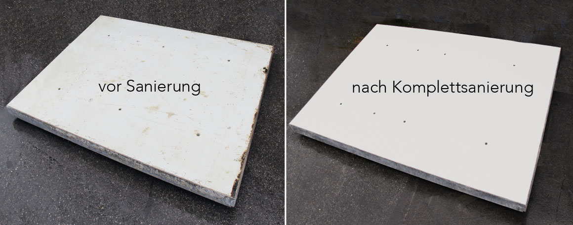 Eine regelmässige Reinigung und Wartung ist für den dauerhaften Erhalt des Schalungsmaterials und guter Ausführungsergebnisse unverzichtbar. Wir bieten Ihnen eine Service-Sanierung für Tobler bzw. aller gängigen Schalungs-Hersteller. Unser Service beinhaltet das Ausplatten, Reinigung der Schalhautauflageflächen und Befreiung von Betonresten. Belegung der Rahmen mit einer Phenolharzplatte oder einer kunsstoffbeschichteten Platte sowie alkus AL und die anschliessende Versiegelung mit einem hochwertigen Fugendichtmittel.