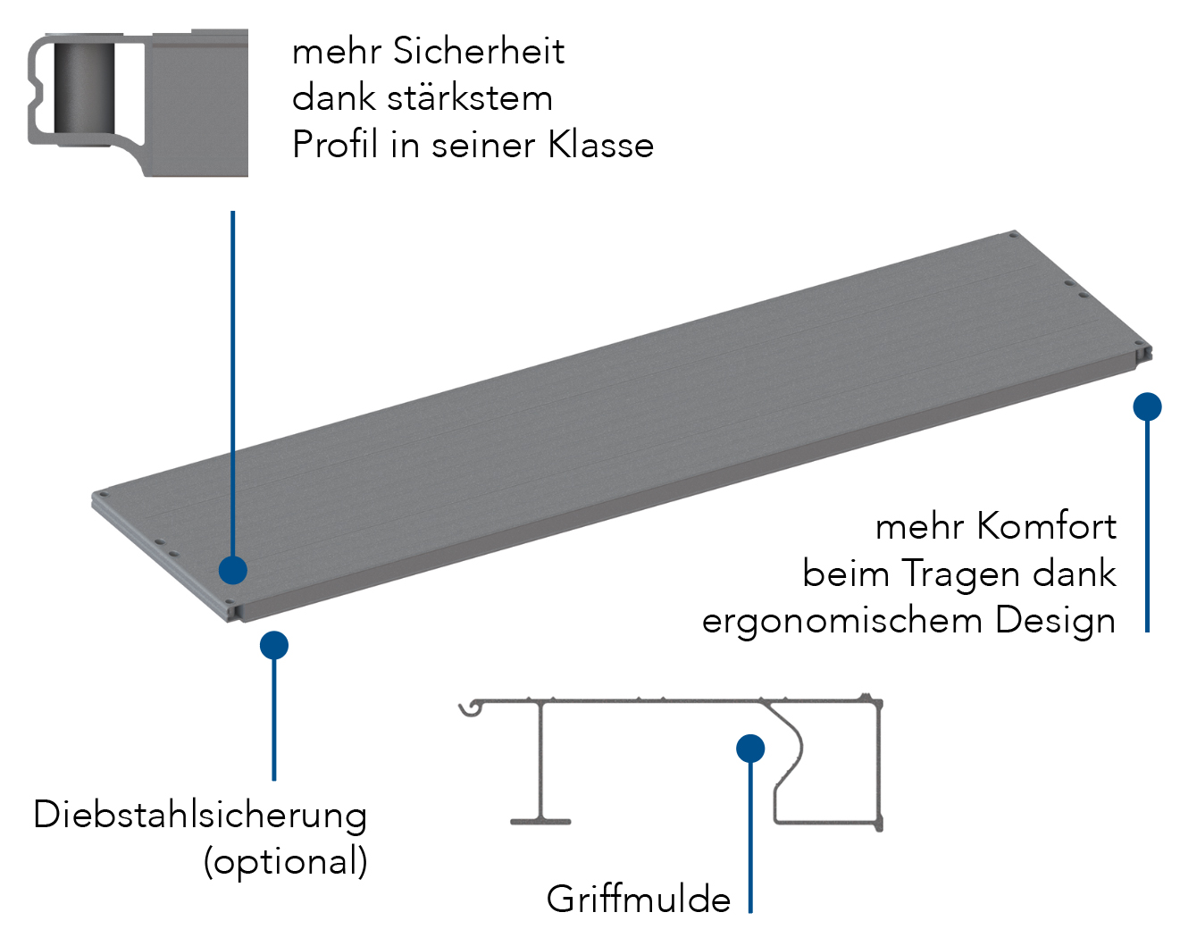 Mit unserem DIBt-geprüften Zubehör zu Ihrem Gerüstsystem erzielen Sie höchste Effizienz bei zugleich maximaler Sicherheit.