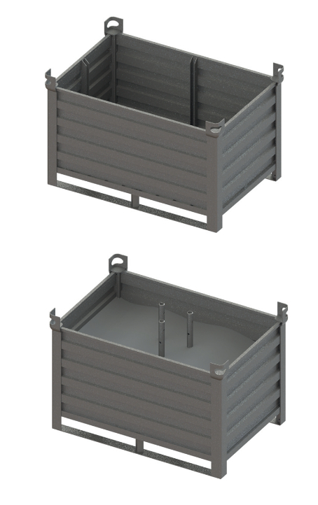 Unsere Gitterboxen sind die platzsparende Lösung für die sichere Lagerung auf dem Bauhof, beim Transport und auf der Baustelle.