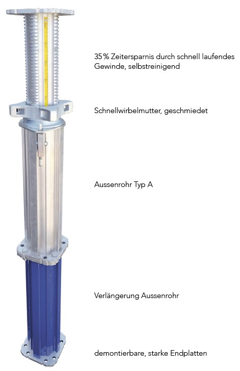 Das schnelllaufende Gewinde erhöht die Wirtschaftlichkeit und verhindert Kosten durch verbeulte Stützen.