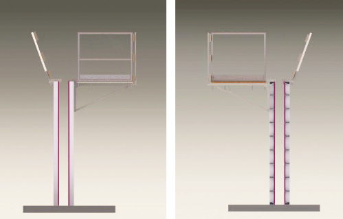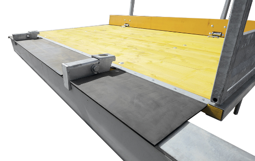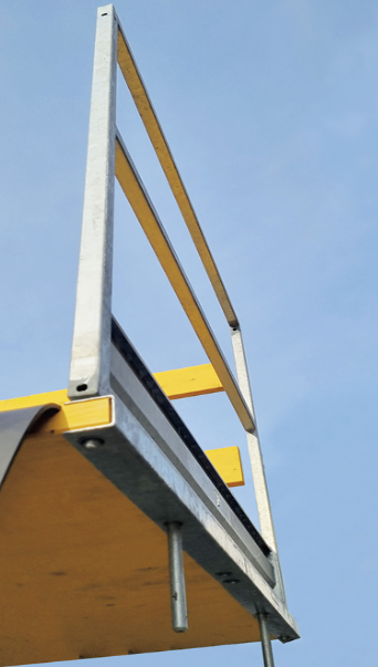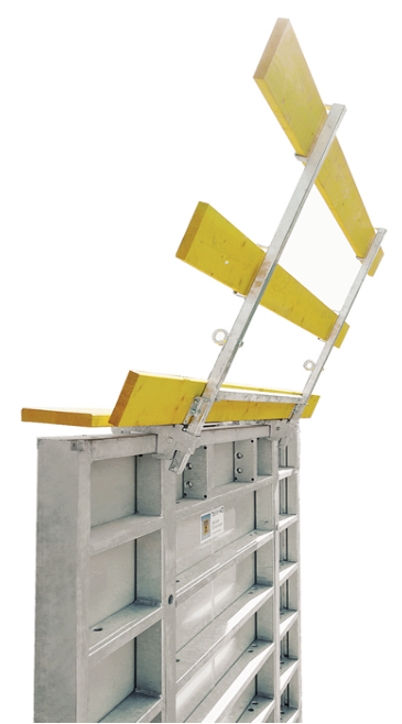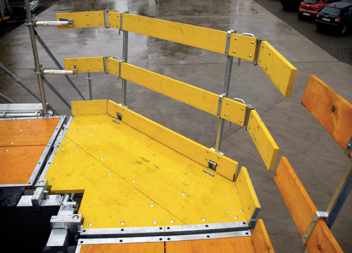 Like our standard concreting platforms, our corner and levelling platforms are also equipped with guardrails having a folding mechanism.