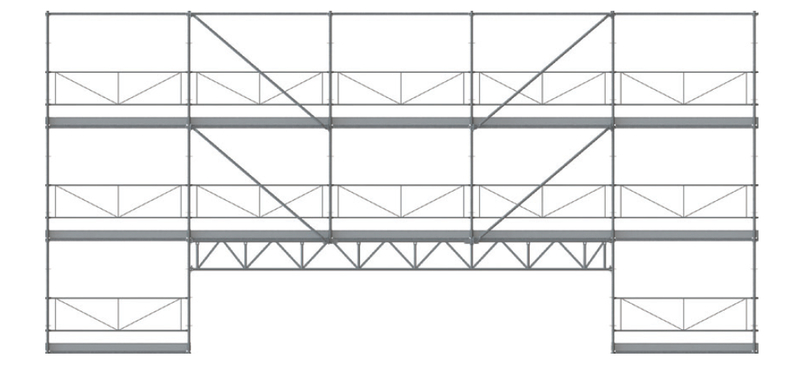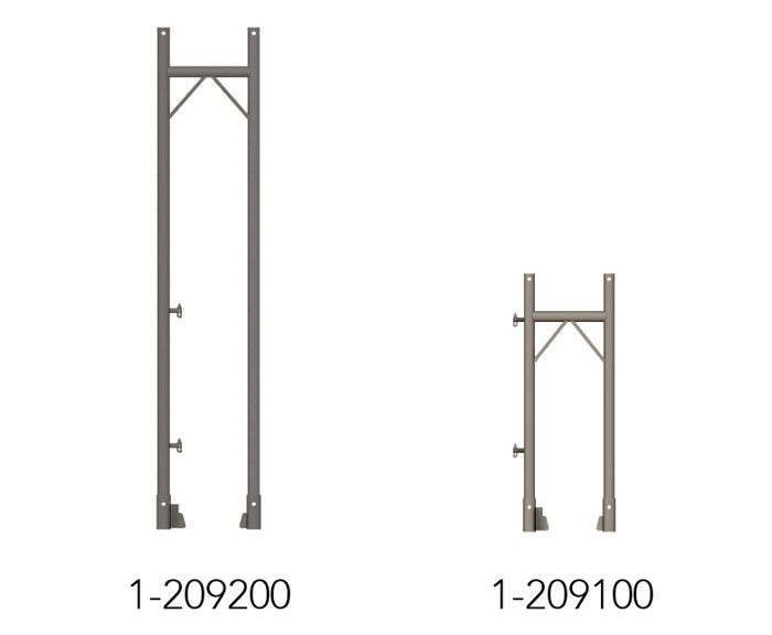 MATO 1 scaffolding frames are available in widths of 70 cm and 100 cm. Depending on the height and maximum load, steel frames with a wall thickness of 2.7 mm or aluminium frames with a thickness of 4 mm are used. For particularly heavy loads, steel frames with a wall thickness of 3.25 mm are available, which are fully compatible with the standard lightweight frame.