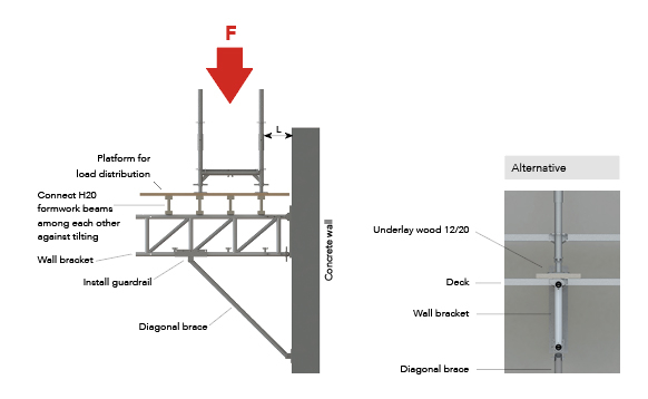 The wall bracket is used to hold the facade scaffolding wherever it cannot be placed on the ground.