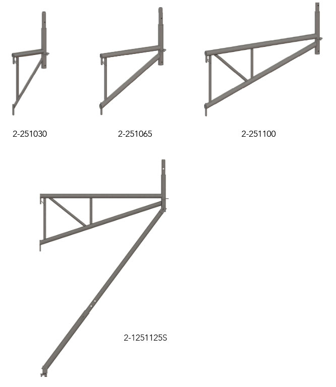 2-251125S SET items (three-part): Outside bracket, wall retainer, and bracket brace 125 cm 21.6 kg