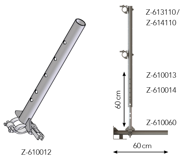 Depending on the masonry, flat roof railing brackets are mounted at a distance of 2 to 3.20 m. Only scaffolding tubes with a diameter of 48.3 mm or aluminium beams may be used as railing.