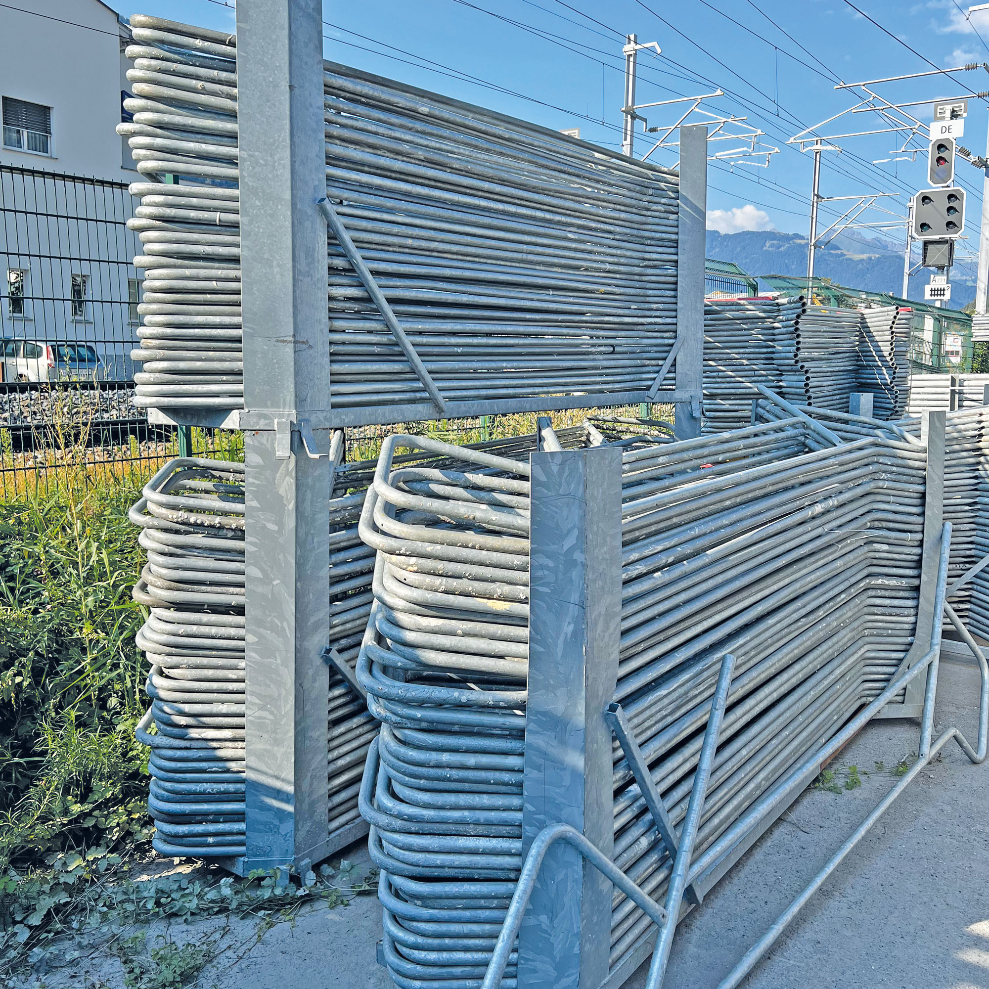 The core of the DIBt-certified system, available in both steel and aluminium, consists of rosettes that are vertically spaced at 50 cm intervals. They allow for connections in four directions. The system can be supplied and combined in widths of 95 cm or 65 cm.