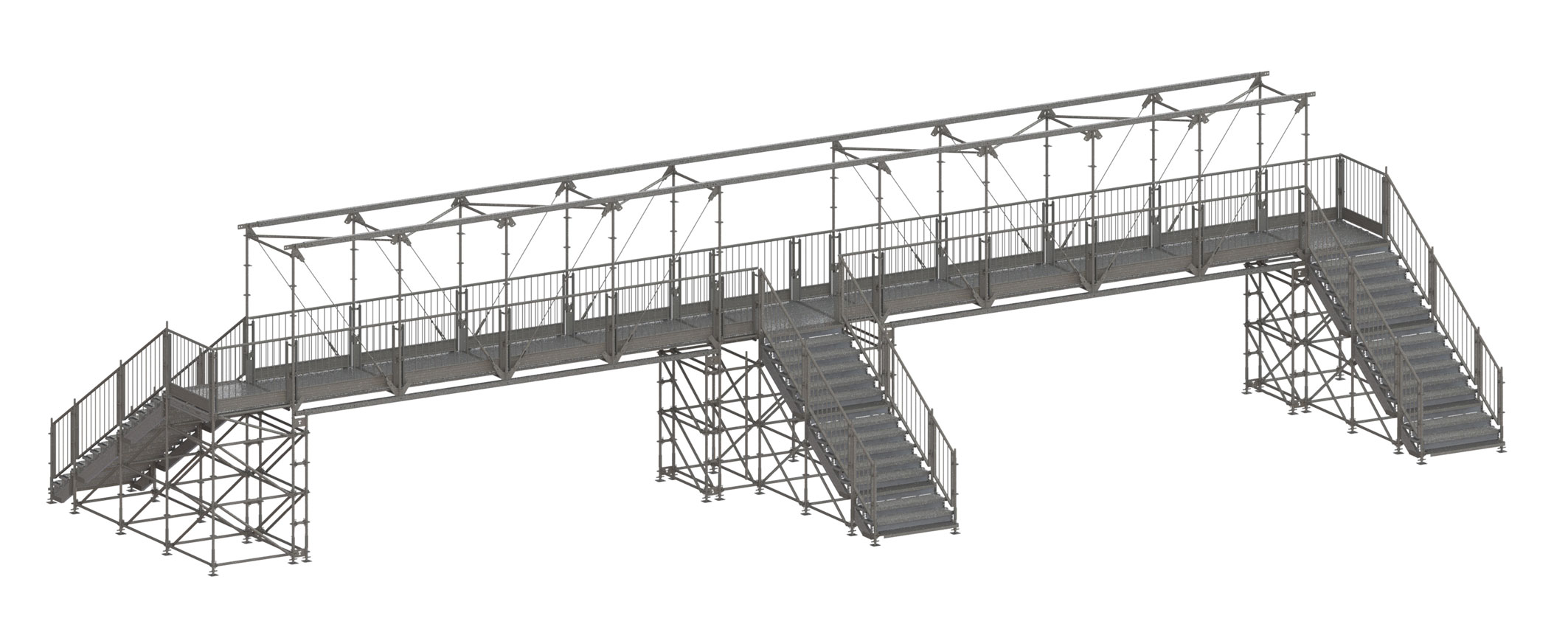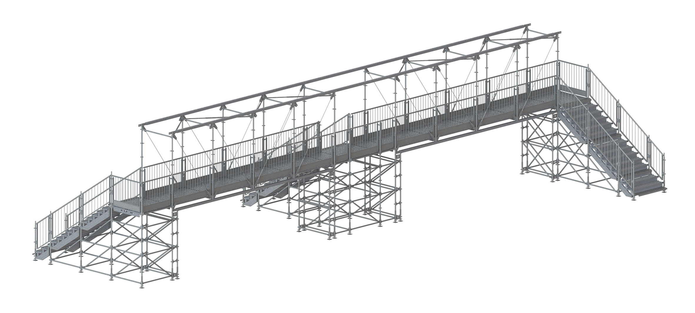 Le MATO Connect Road Bridge est la meilleure solution pour les installations temporaires telles que les chemins piétonniers ou les projets de travail. Avec une portée allant jusqu'à 36 m, le MATO Connect Road Bridge permet de franchir les routes et les obstacles les plus larges. Avec la technique d'échafaudage modulaire MATO 8 et des pièces spéciales nouvellement développées. Les revêtements MATO 3 apportent un sentiment de sécurité supplémentaire grâce à des surfaces antidérapantes et propres.