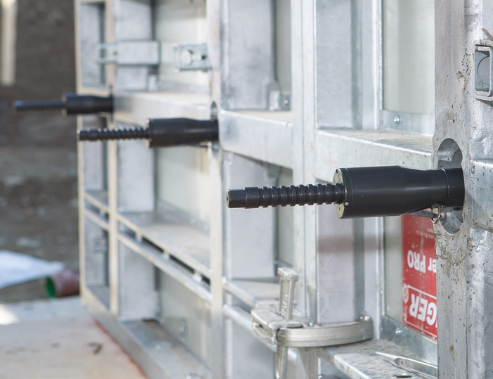 Les points d’ancrage intérieurs font que le système est parfait pour l’application avec le béton apparent. Le système d’étanchéité spécial permet une uniformité de surface du béton. Les trous d’ancrage sont fermés par des bouchons ou des rondelles pour béton apparent.