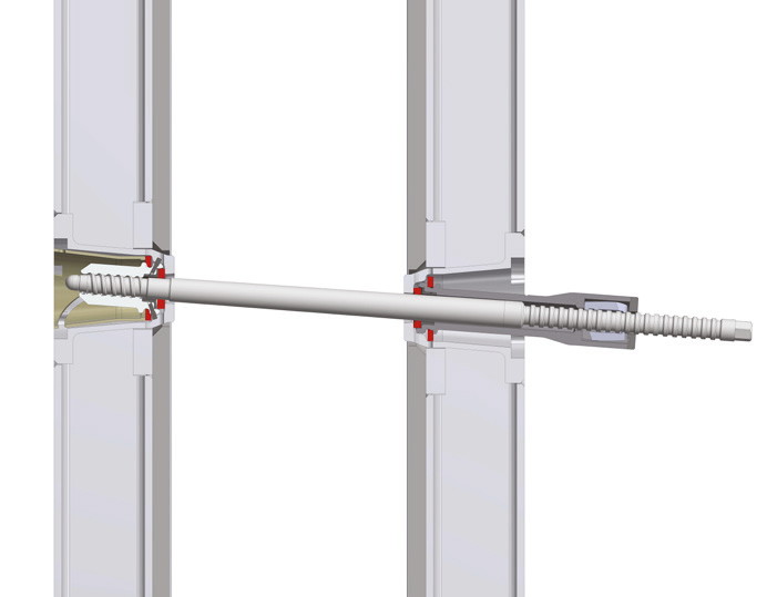 La tige d’ancrage préréglée est tournée jusqu’à la butée sur le côté du coffrage de fermeture. Pas d’autres étapes nécessaires.