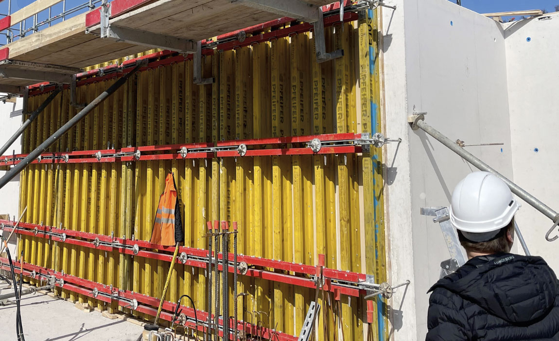les exigences du client (béton apparent)Délais de livraison courts grâce au stockage de tous les éléments de coffrage dans l’atelier de Tobler