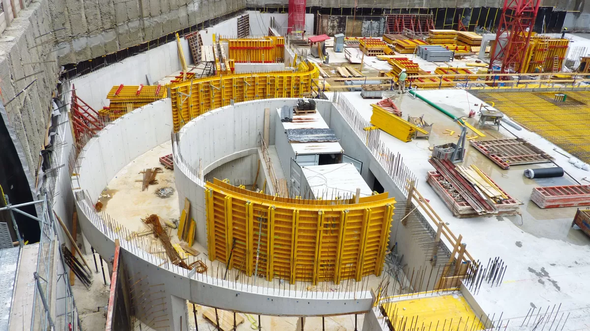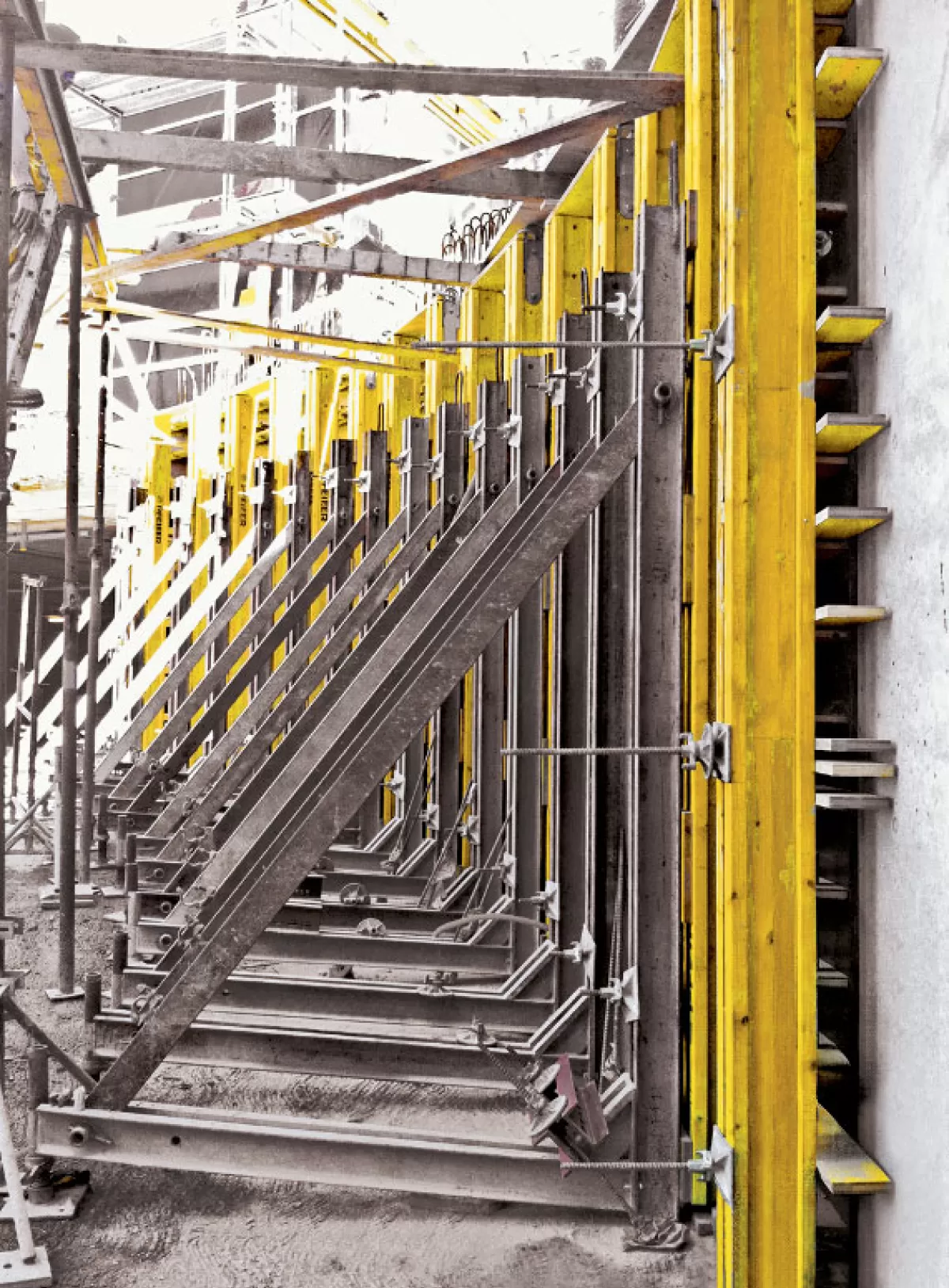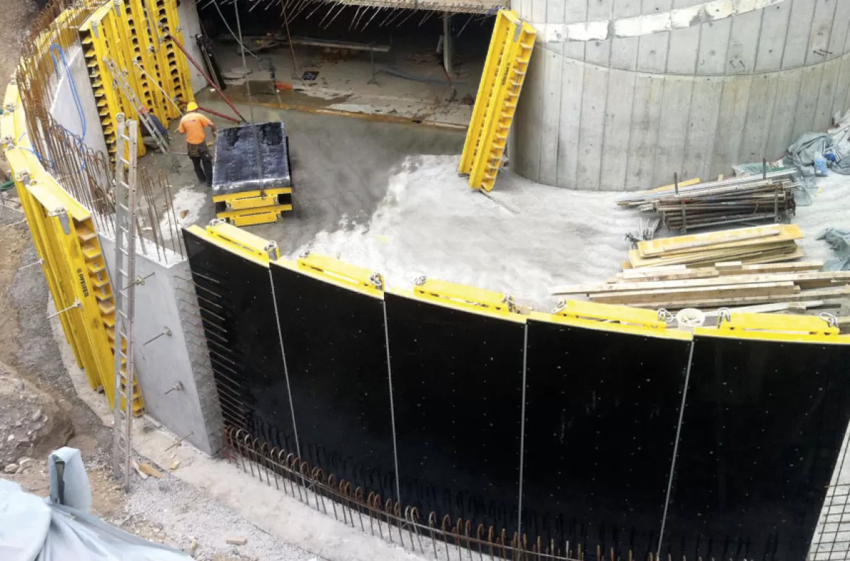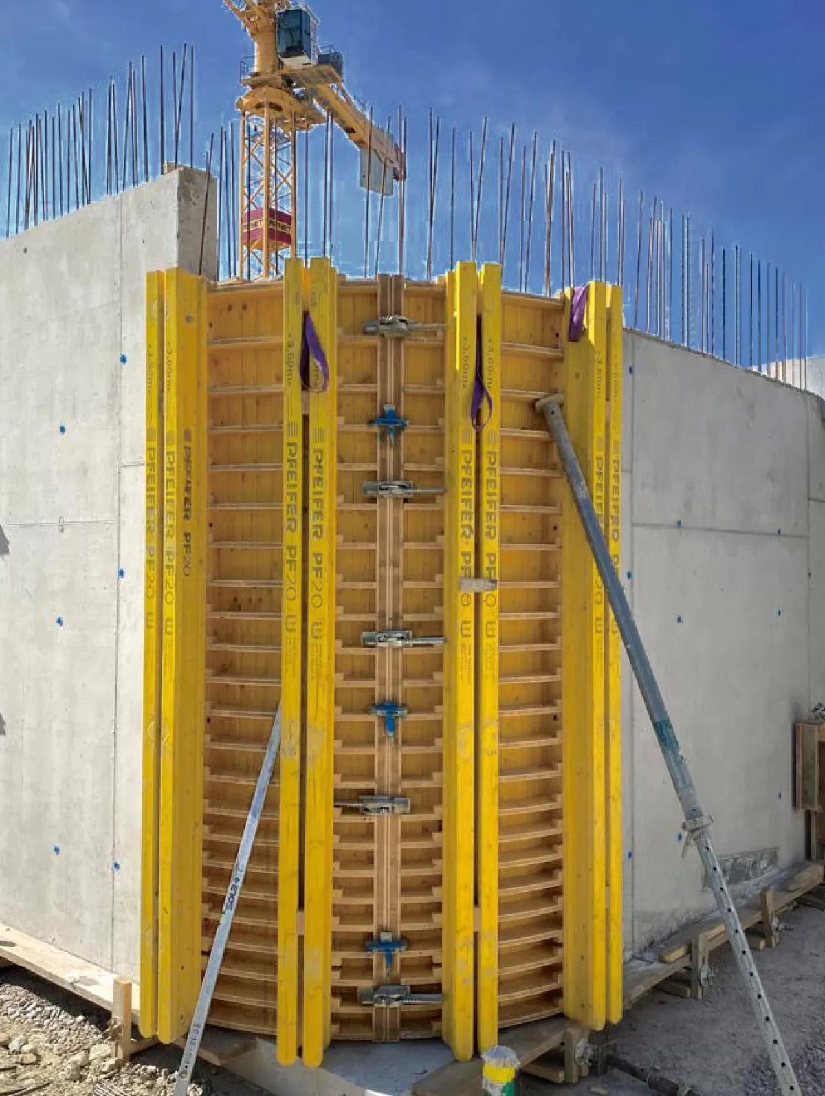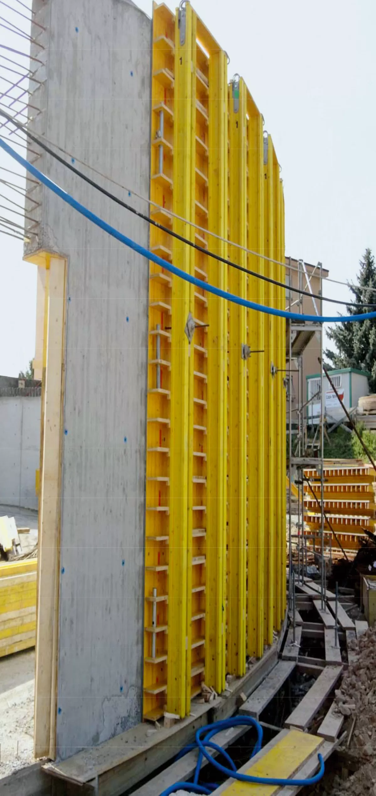 Le coffrage à tasseaux H20  avec des poutres H20 doubles et des tasseaux horizontaux permet une exécution personnalisée de murs et une hauteur jusqu’à 5,50 m.