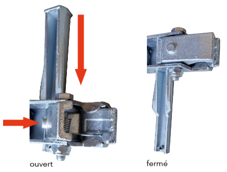 Pour fixer le cadre, il suffit d’appuyer sur le verrou pour que la clavette de serrage s’enclenche automatiquement en position.