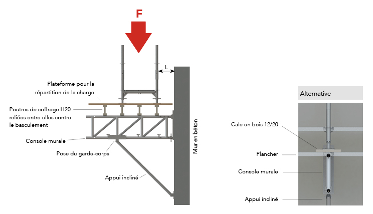 La console murale sert à recevoir l’échafaudage de façade partout où il ne peut pas être posé au sol.