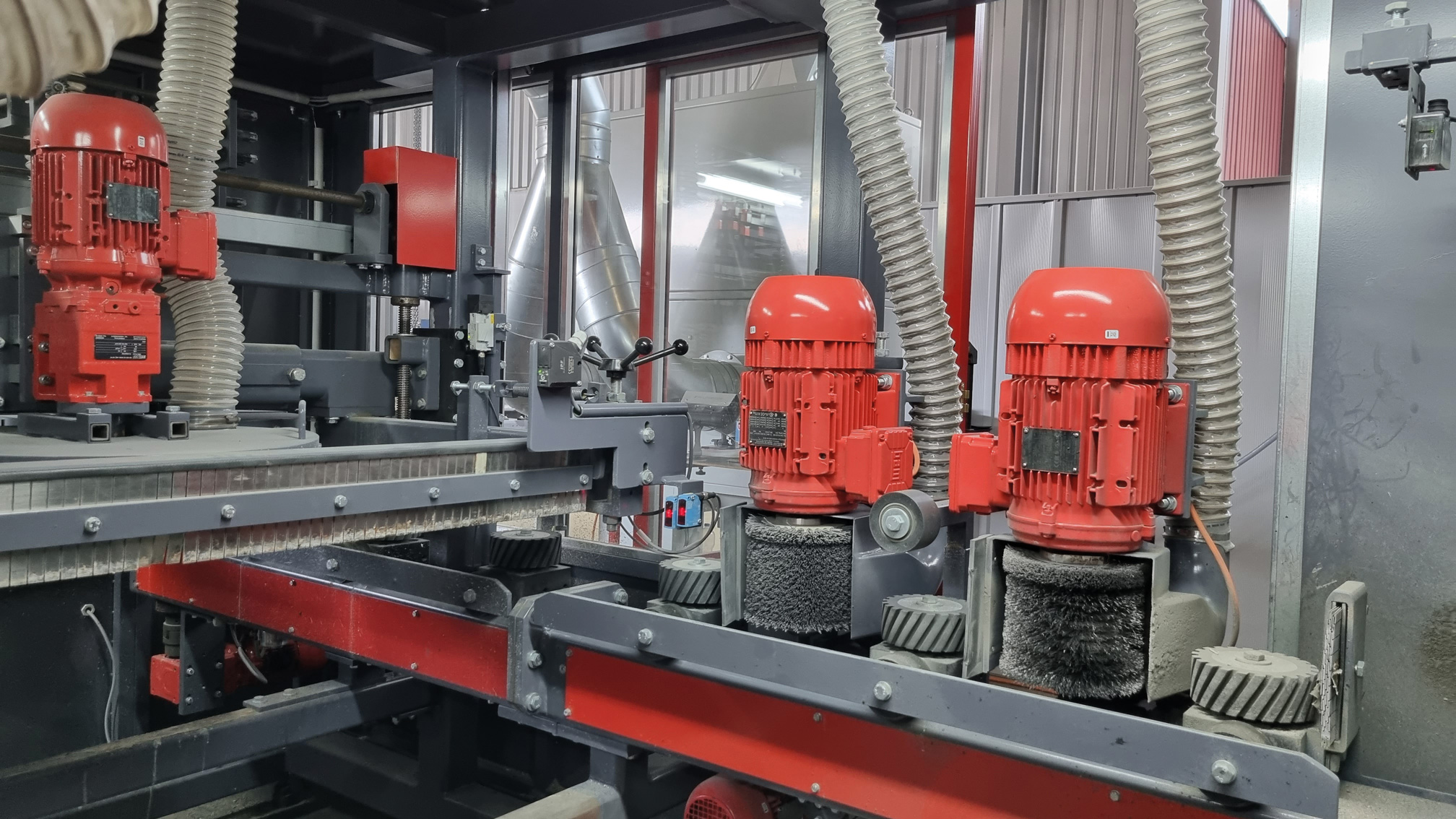 De chaque côté, deux paires de brosses nettoient simultanément les bords des cadres de coffrage.