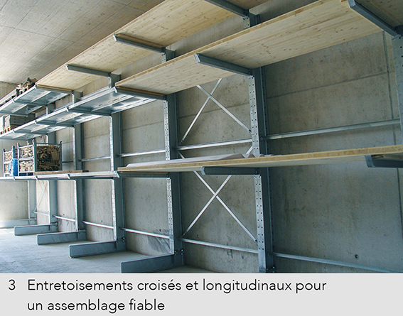Les entretoisements croisés et longitudinaux dimensionnés en fonction de l’entraxe offrent une résistance supplémentaire (3).