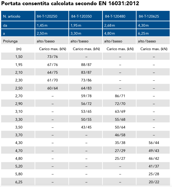 Le lunghezze del telaio da 62 cm a 296 cm facilitano la configurazione flessibile delle distanze fra i puntelli.