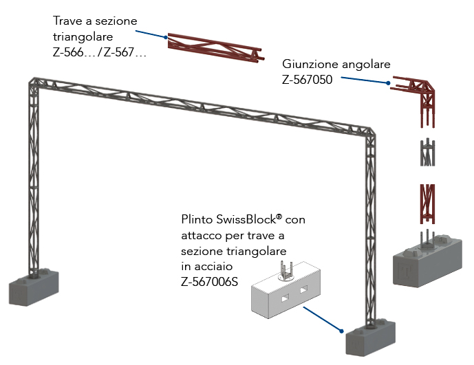 Giunzione angolare per trave reticolare a sezione triangolare Tobler SA